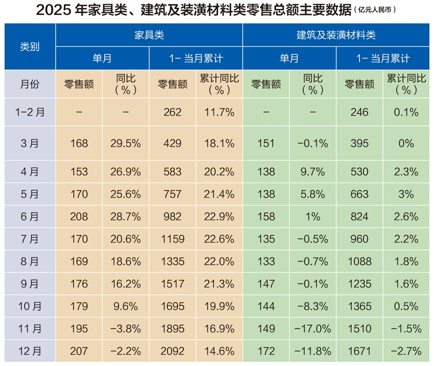 近日,国家统计局与海关总署发布2025年相关统计数据显示,2025年我国家具市场内销受益于政策支持与消费升级,全年增势较好;出口市场虽全年同比小幅下滑,但12月单月环比明显回升。据国家统计局数据,20