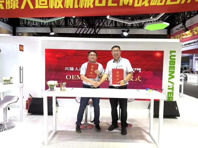 2025年9月上海国际木工展期间,青岛中科润美润滑材料技术有限公司与临沂兴滕人造板机械有限公司举行OEM战略合作签约仪式,双方达成战略合作伙伴关系,将共同为人造板机械领域提供高性能、高可靠性的润滑解决
