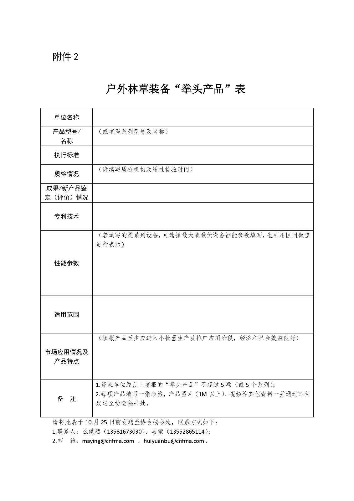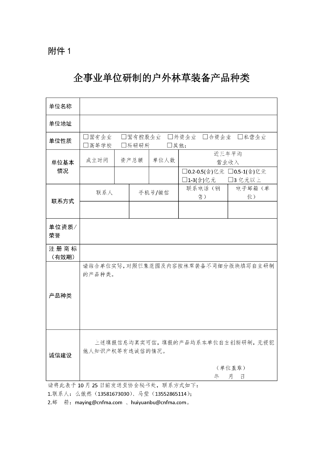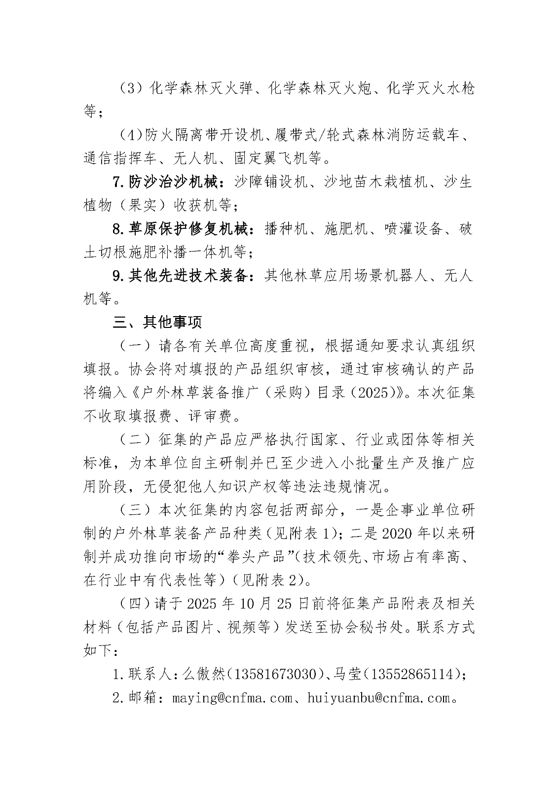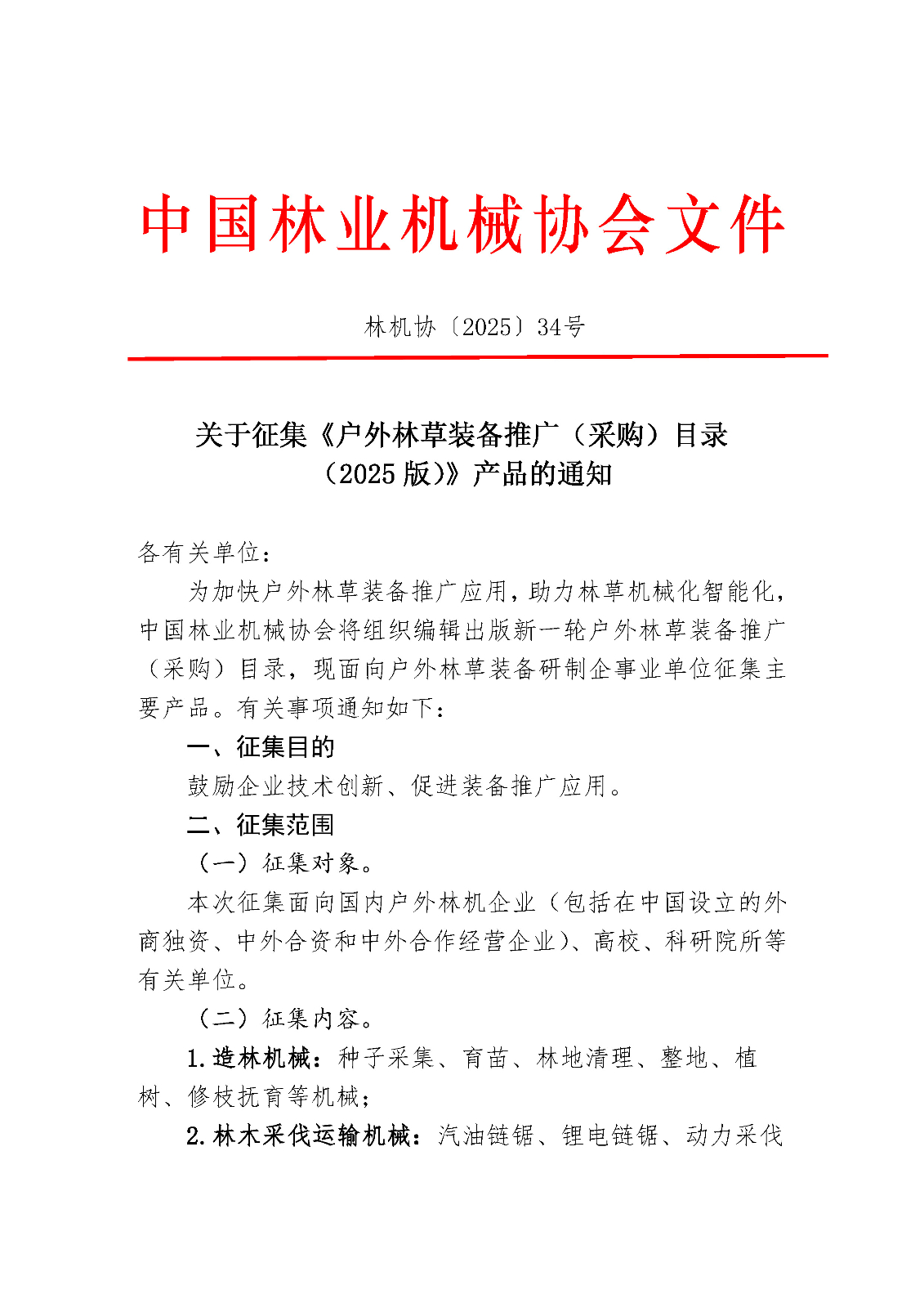 关于征集《户外林草装备推广(采购)目录 (2025版)》产品的通知