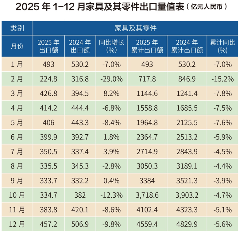 2025年我国家具类零售总额增长14.6%,12月家具出口环比增长19.1%