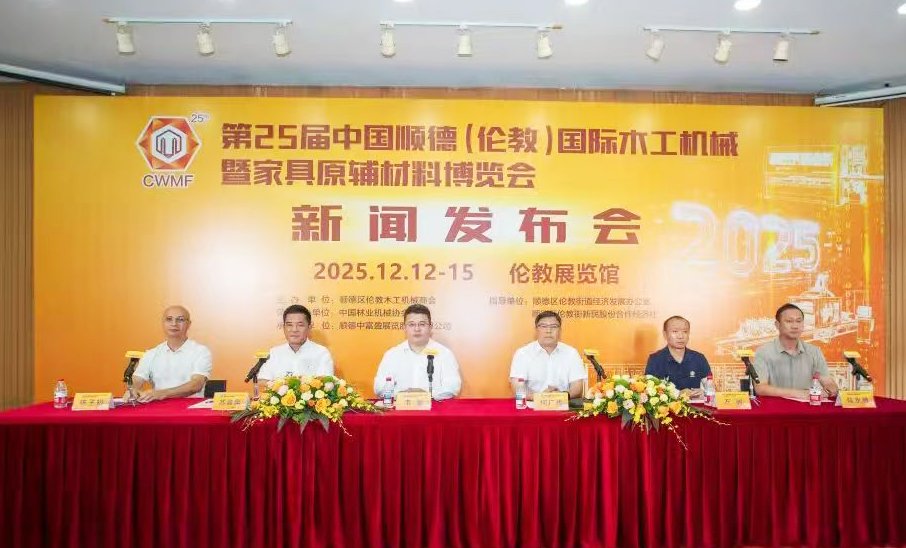 8月22日,第25届中国顺德(伦教)国际木工机械暨家具原辅材料博览会新闻发布会在佛山市顺德区伦教展览馆举行。中国林业机械协会副会长、伦教木工机械商会会长苏泉窝、中国林业机械协会秘书长和顺德区伦教街道党