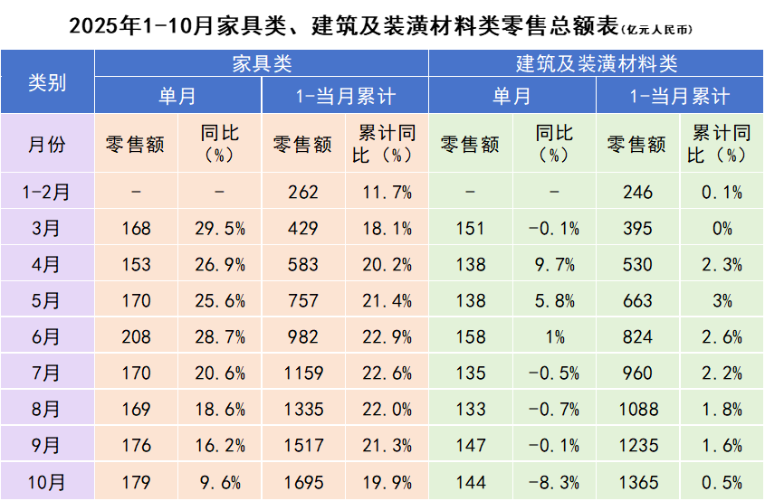 10月全国家具类零售总额179亿元,同比增长9.6%